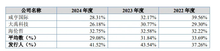 公司在问询回复中通过与咸亨国际、海伦哲、大禹科技等同业对比解释,与咸亨国际相比,后者因经销产品占比高、毛利率较低,导致整体毛利水平不如里得科技。且双方在产品种类、应用领域上存在较大差异;在专用车辆业务上,里得科技的毛利率略低于海伦哲,主要是受部分外协加工和经销业务的影响;而与业务结构差异较大的大禹科技相比,毛利率差距主要源于产品与服务内容不同。