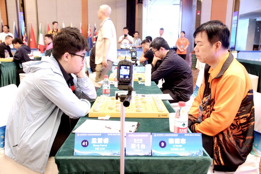 男子个人组,中国棋手孟繁睿昨天先胜阮成保、后和赖理兄,11分独自领跑。另一位中国棋手尹昇取得两连胜,与越南赖理兄等3名棋手同积10分暂列第二梯队。在9月25日13时进行的第七轮比赛中,孟繁睿战和马来西亚黎德志,尹昇取胜。